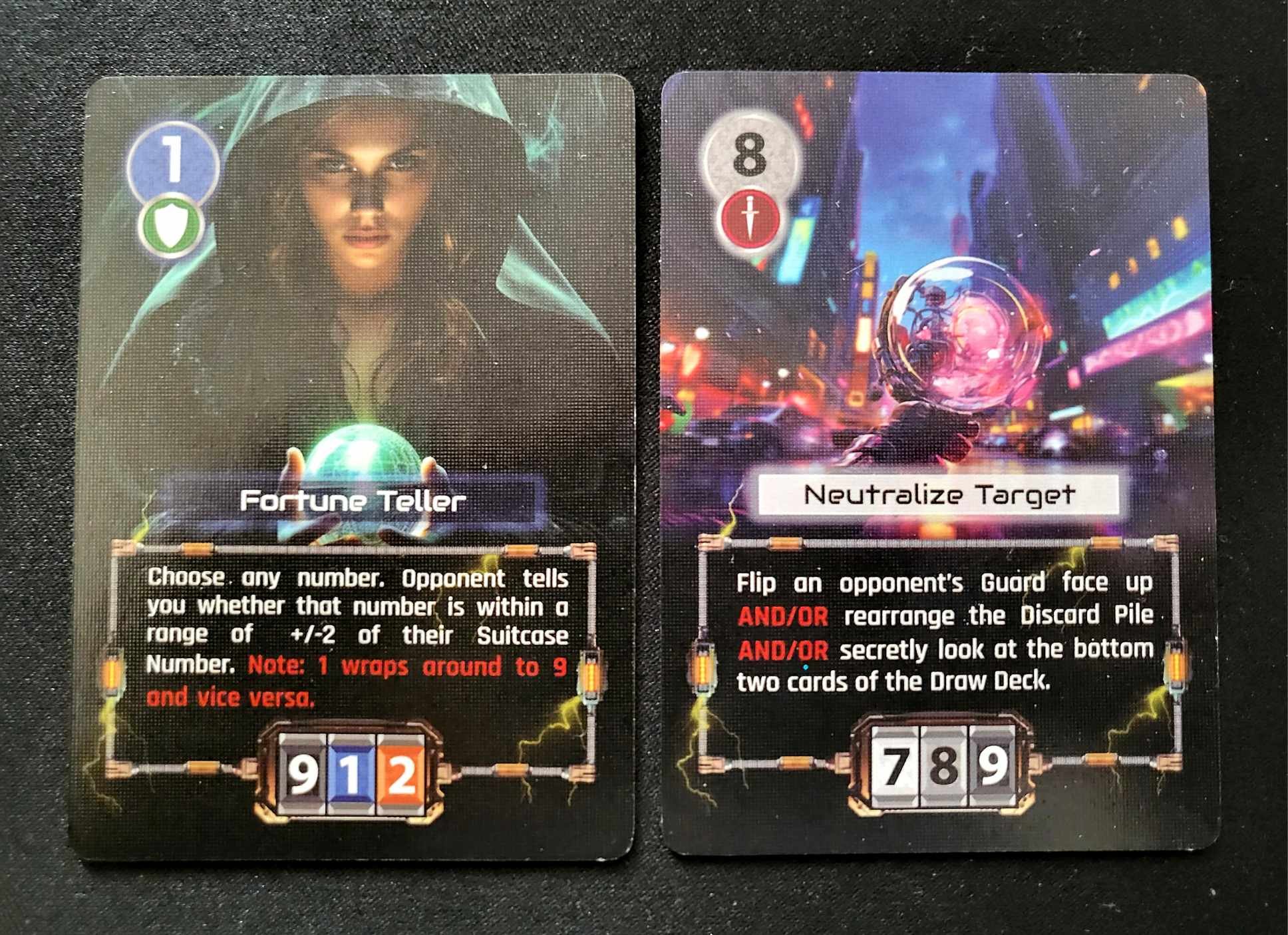 By round 3, you should have at least one guard in play. If your opponent already has a guard on the field, consider playing Neutralize Target (8)—this lets you flip that guard face-up and peek at the final two cards in the draw deck. If you’re getting close to cracking their suitcase code, playing Fortune Teller (1) can also help clarify your deductions.